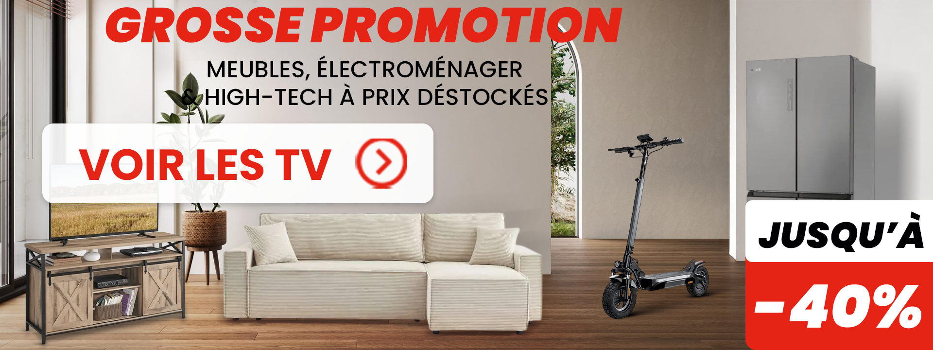 Tous nos produits sont neufs et garantis, issus de surplus d’usine, fins de série ou déstockages exclusifs de grandes marques. Cela nous permet de vous offrir des prix imbattables sans compromis sur la qualité.