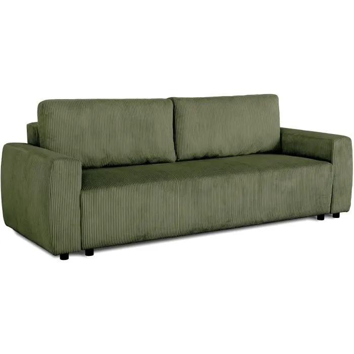 Le canapé convertible 3 places PHARELL en tissu velours côtelé pearl est l’incarnation de l’élégance et du confort. Avec ses dimensions de 231 x 84 x 91 cm et son espace de couchage de 189 x 138 x 8 cm, il est parfait pour accueillir vos invités. Le coffre de rangement de 210L (180 x 70 x 25 cm) vous permet de garder vos affaires bien organisées. Livré avec deux coussins moelleux de 96 x 45 cm, ce canapé est conçu pour offrir un confort optimal. Sa structure en bois de bouleau et panneaux de particules assure une solidité à toute épreuve. Ajoutez une touche de sophistication à votre salon avec ce canapé au design raffiné.