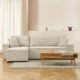 Le canapé ZOLA cache sous son assise un coffre discret mais généreux, idéal pour ranger plaids, coussins ou linge de maison et garder un salon bien organisé au quotidien.