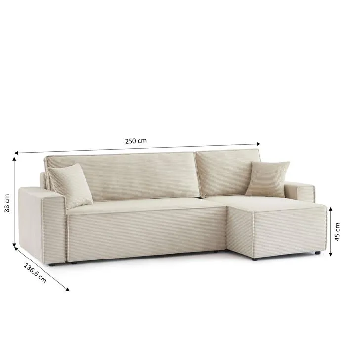 | Nom du produit | Canapé d’angle convertible et réversible 4 places ZOLA velours côtelé beige |