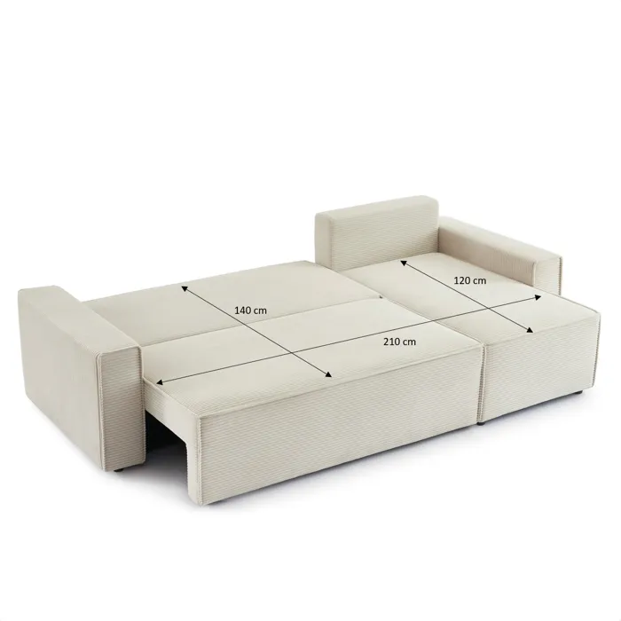 Un modèle convertible et réversibleLe canapé ZOLA s’adapte à vos besoins et à votre espace. Son angle réversible vous permet de positionner la méridienne à gauche ou à droite, selon vos envies. De plus, sa fonction convertible permet de le transformer rapidement en un couchage d’appoint de 140 x 210 cm, parfait pour accueillir famille et amis en toute simplicité. Sous l’assise, vous trouverez un coffre de rangement, idéal pour y stocker vos coussins et plaids.