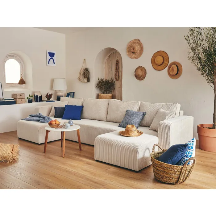 Son style bohème et son tissu côtelé doux au toucher en font un canapé à la fois tendance et intemporel, capable de s’intégrer dans tous les styles de décoration.