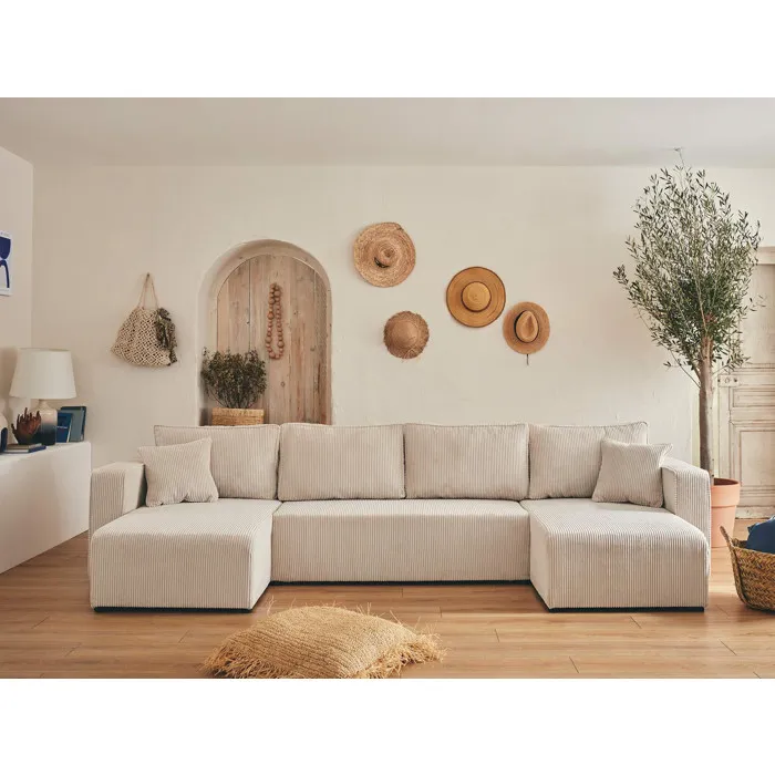 | Nom du produit | Topaze – canapé panoramique en U – 7 places – convertible avec coffre – en velours côtelé – Beige |