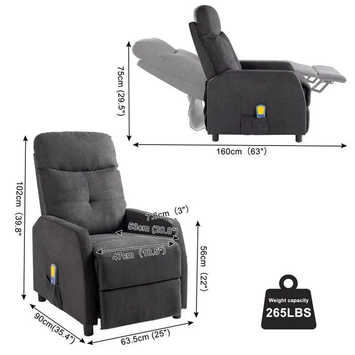Équipé de doubles points de massage et d’une fonction de chauffage électrique, ce fauteuil est conçu pour détendre votre corps en profondeur, tout en ciblant la douleur. Que ce soit après une longue journée de travail ou simplement pour un moment de repos, les fonctions de massage et de chaleur se combinent pour un apaisement maximal. Grâce à la télécommande incluse, vous pouvez facilement contrôler les modes de relaxation, permettant une utilisation sans tracas.