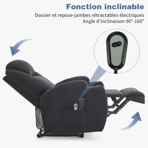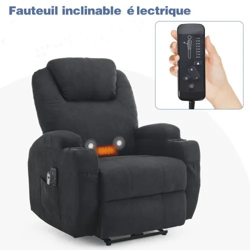 | Nom du produit | Fauteuil relaxation Massage inclinable électrique en tissu, avec Repose-Pied Ajustable, Noir |