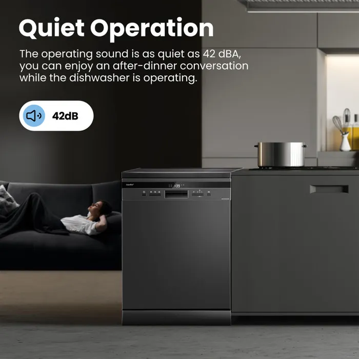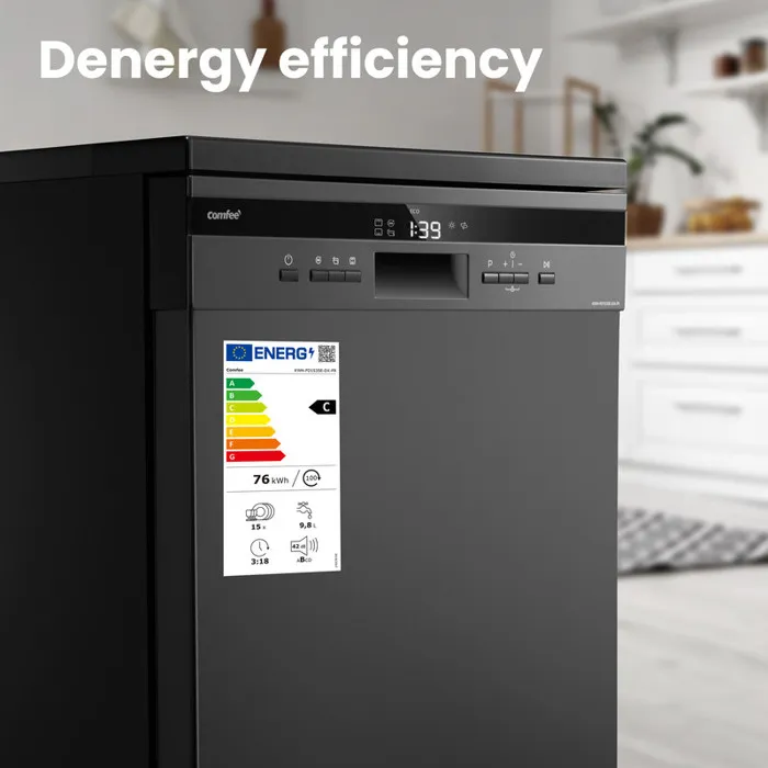 Lave-vaisselle pose libre Comfee FD1535E-DX L60cm 42db avec 15 couverts, 8 programmes, Affichage LED Dark Inox-nergtique C