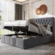 | Nom du produit | lit coffre, lit double, lit adulte, lit 160×200 avec sommier, lit capitonné, avec levier hydraulique, velours, gris |
