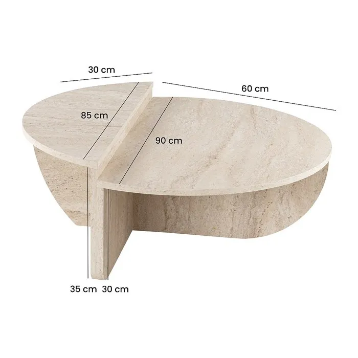 Lot de 2 tables basses – Effet travertin beige – ALOEVA