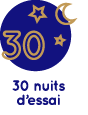 VOS MEILLEURES NUITS SONT A VENIR : 30 NUITS À L’ESSAINous savons également qu’il est impossible de prendre une décision rapide sur l’achat d’un produit sur lequel vous allez passer un tiers de votre vie.C’est pourquoi nous vous laissons 30 nuits pour l’essayer et vous décider !