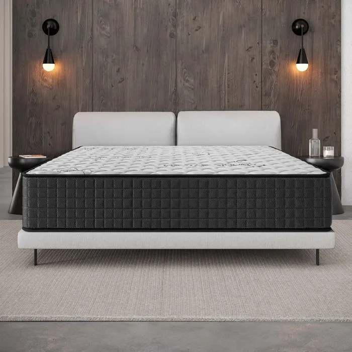 | Plus produit | 1.Conçu en France et fabriqué en Europe : Le savoir-faire français pour un matelas qui dure. 2.Composé de ressorts ensachés et de mousses haut de gamme : le meilleur des 2 mondes ! 3.Confort premium :12 couches optimisées pour 12 fois plus de confort ! 4.Concentré de 4 technologies : Mousse mémoire, latex, ressorts et mousses HR. 5.Maintien adapté à toutes les morphologies : 7 zones de confort. 6.Soutien harmonieux point par point : 1050 ressorts ensachés de 18 cm pour un soutien ferme. 7.Adapté à toutes les positions de sommeil : Alliance parfaite entre souplesse et soutien. 8.Plus de douleurs au réveil : Fermeté idéale pour un sommeil sans interruption. 9.Soutien frais et confortable : Fini le sommeil perturbé par la transpiration! |