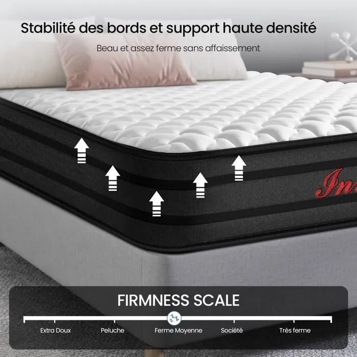 Notre technologie multicouches assure un soutien optimal tout en préservant la durabilité du matelas, évitant tout affaissement prématuré. Vous méritez des nuits réellement réparatrices – INRE rend cela possible.