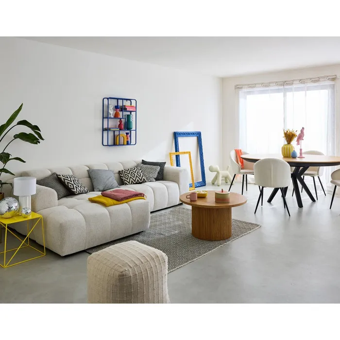 | Plus de produits | Forme organique tendance | Assise moelleuse et confortable | Revêtement en tissu texturé | Fabrication européenne | |