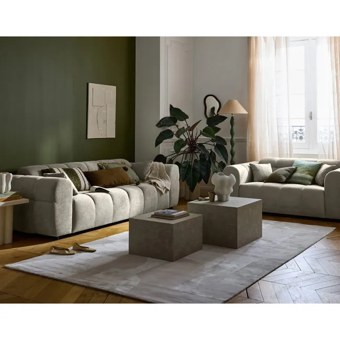 Le Ray, un canapé droit 3 placesLe Ray – canapé droit 3 places en tissu texturé allie parfaitement confort et esthétique. Son assise bombée, douce et enveloppante, offre une sensation de légèreté, créant un véritable cocon de détente. Le dossier incurvé garantit un soutien optimal pour le dos, permettant de profiter d’un confort durable, que ce soit pour se relaxer seul ou recevoir des invités. Avec ses lignes épurées et son design raffiné, le canapé Ray s’intègre aisément dans n’importe quel salon, apportant une touche moderne et élégante.