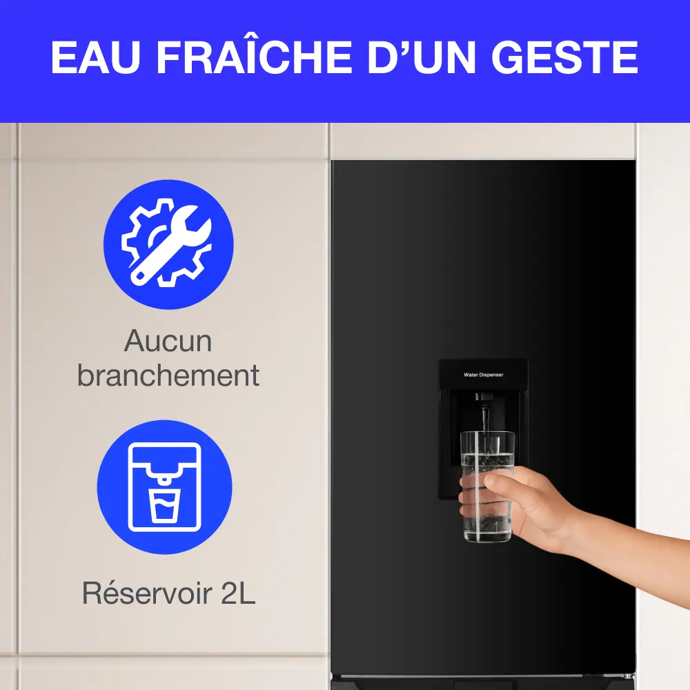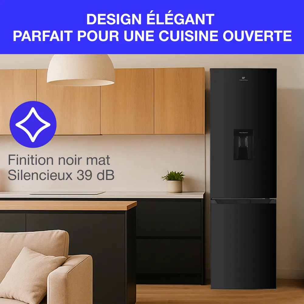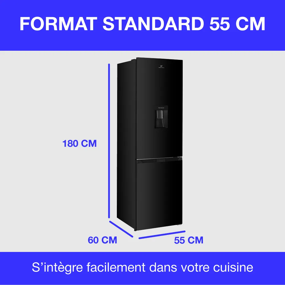 Ce réfrigérateur congélateur bas de CONTINENTAL EDISON, d’une capacité de 251L, dispose du système Total No Frost (Sans givre) pour éviter la formation de givre, d’un distributeur d’eau de 2L, d’un éclairage intérieur, d’un thermostat électronique, d’un dégivrage automatique, de portes réversibles et d’une classe énergétique E. Dimensions : L55 x P60 x H 180 cm. Couleur : Inox.