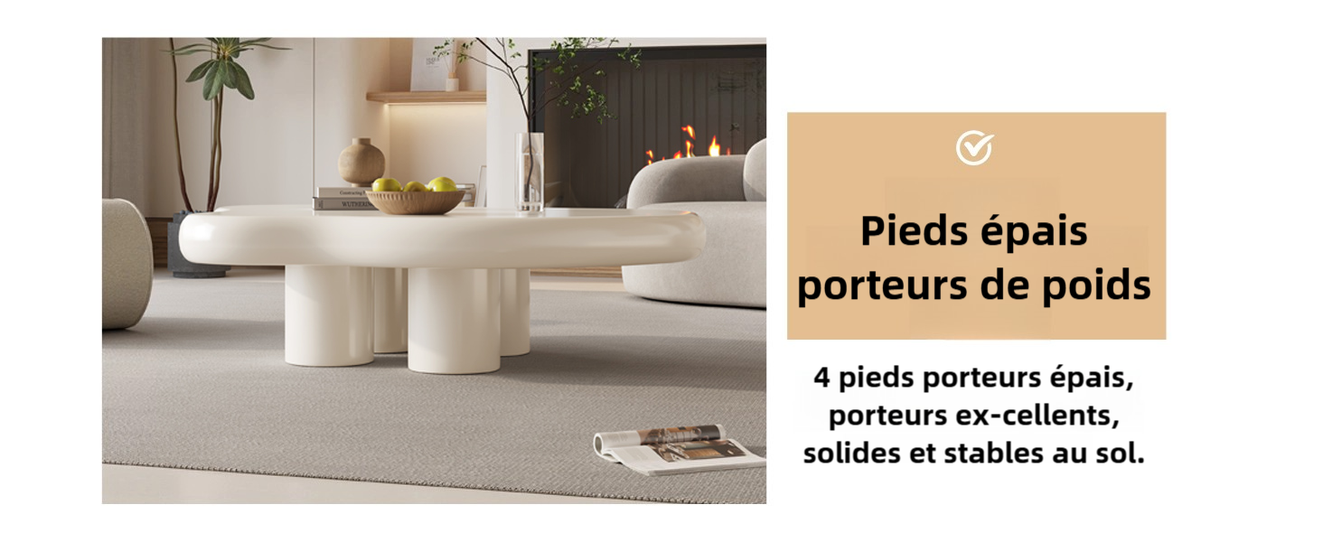 Design raffiné : Cette élégante table basse présente un design nuage moderne et minimaliste, avec un plateau rond et une base solide, apportant une touche créative et artistique à votre espace. Son design unique en fait un point focal captivant dans n’importe quelle pièceStructure durable : Cette table basse est fabriquée à partir de matériaux de haute qualité, avec quatre pieds solides en dessous, offrant une excellente stabilité et une capacité de charge. Cela garantit sa durabilité et sa stabilitéDesign minimaliste : Cette table basse adopte un blanc crème minimaliste, créant une esthétique moderne et épurée qui s’harmonise facilement avec divers styles d’intérieur. Elle ajoute une touche de simplicité et d’élégance à la salle à manger, la chambre, le salon, la cuisine et le lounge. Son grand plateau offre suffisamment d’espace pour exposer des décorations, des livres ou servir des encasStyle polyvalent : Cette table basse présente des lignes épurées et une couleur neutre, s’harmonisant parfaitement avec diverses esthétiques de design intérieur, apportant une touche créative et artistique à votre espace. Son design unique en fait un point focal captivant dans n’importe quelle pièceFacile à assembler : cette table est facile à monter, vous pouvez donc être tranquille, notre équipe de support après-vente fiable peut résoudre tout problème. La surface lisse du plateau est facile à nettoyer, il suffit de l’essuyer avec un chiffon humide propre