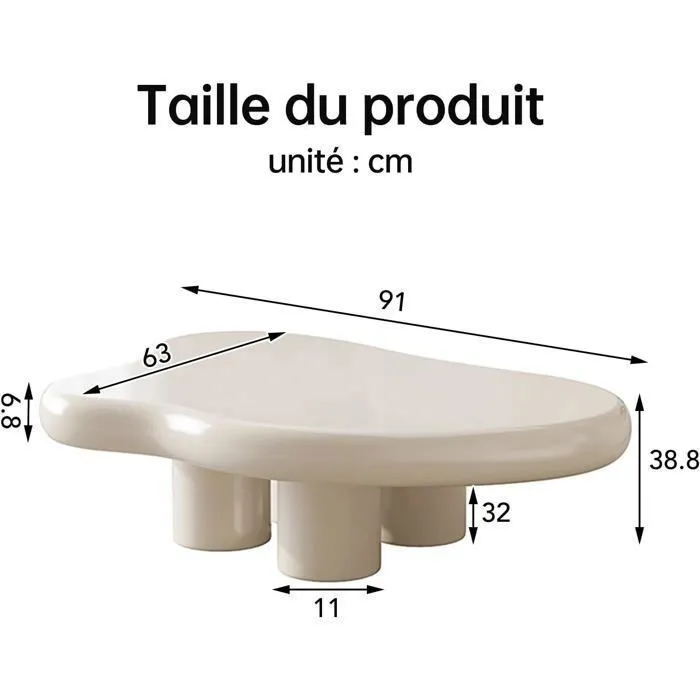 Nom du produit Table Basse Cloud, Salon Central Minimaliste Table Basse irrégulière à Quatre Pieds (blanc crème 91cm)