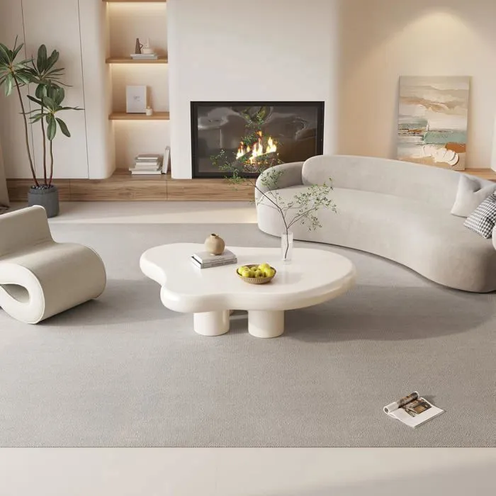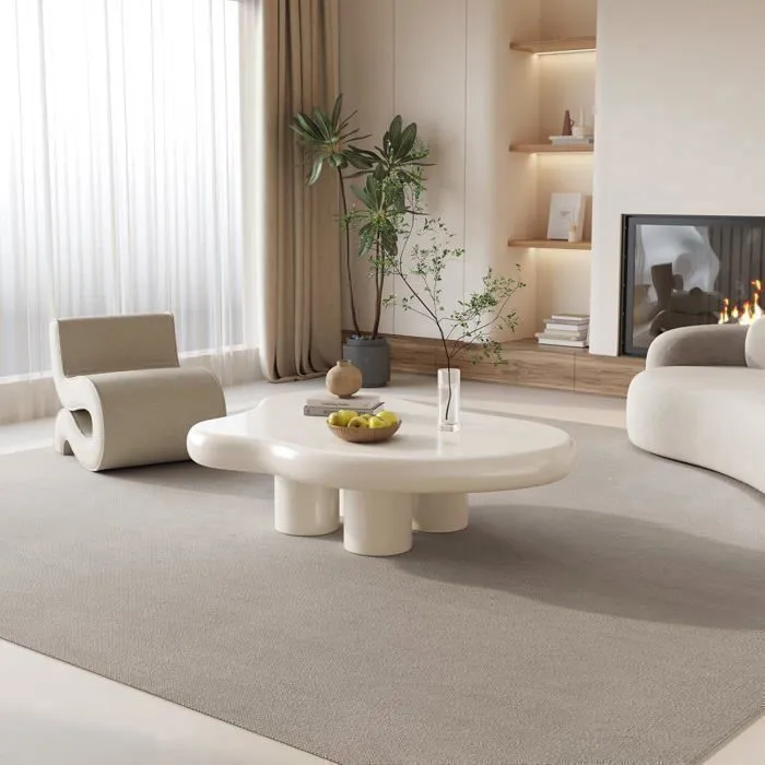 Table Basse Cloud, Salon Central Minimaliste Table Basse irrégulière à Quatre Pieds (blanc crème 91cm)