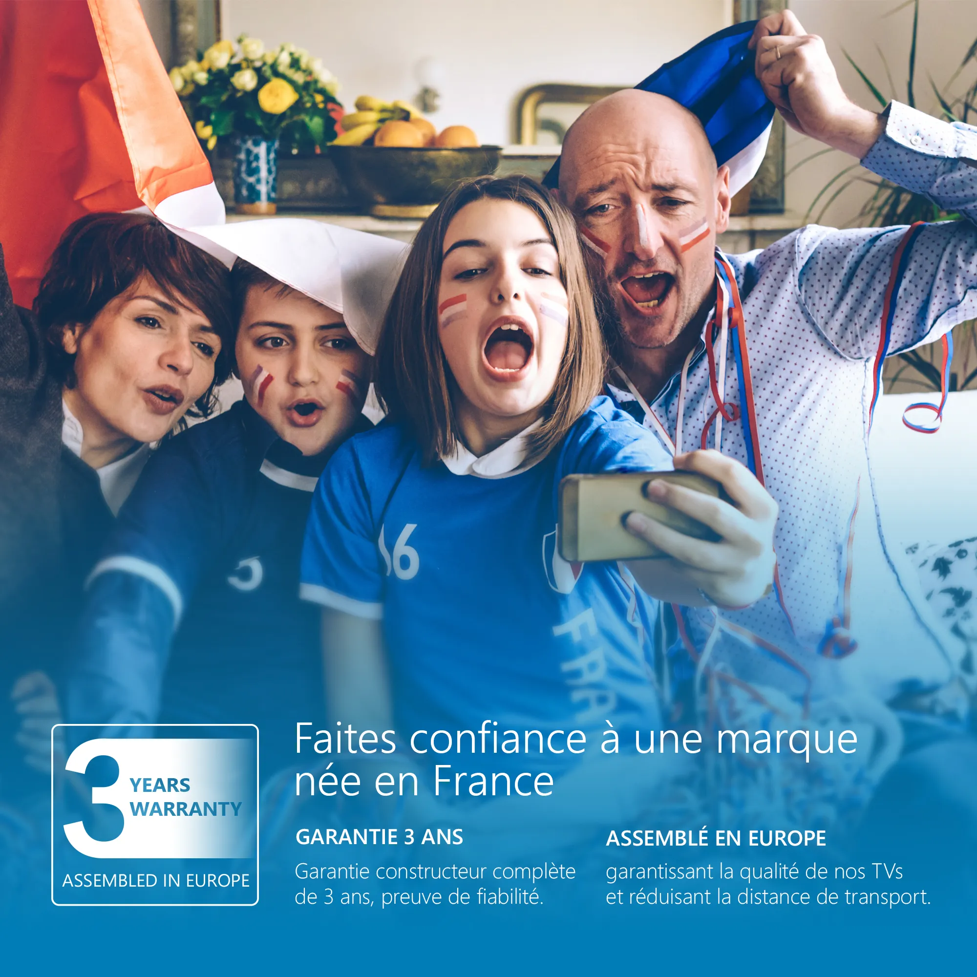 Grâce à son design élégant et son cadre sans bords sur 3 côtés, vous pouvez vous concentrer pleinement sur l’action à l’écran. Le triple tuner intégré permet la réception via une antenne satellite, une antenne terrestre ou le câble. La technologie Dolby Audio crée une expérience sonore dynamique.