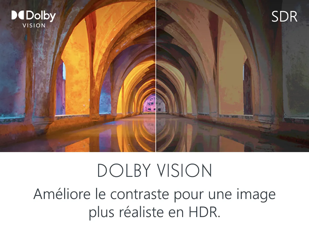 Dolby Vision: Améliore le contraste pour une image plus réaliste en HDR.