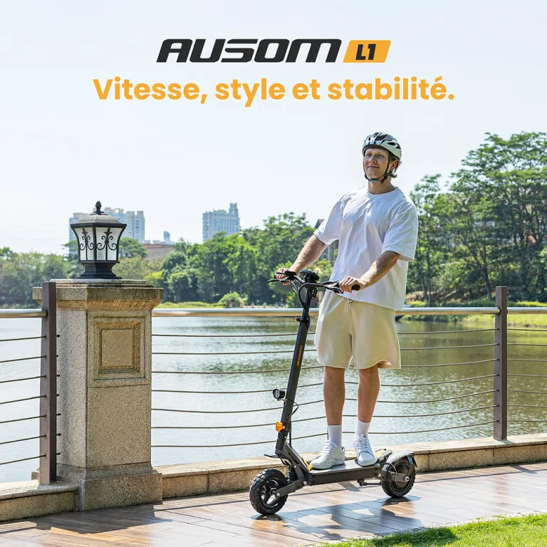 | Nom du produit | Trottinette Électrique Ausom L1 – Moteur à Pic 1100W – Batterie 15.6Ah – Pneus Tubeless 10″ – Suspension à Bras Oscillant – 70 km |