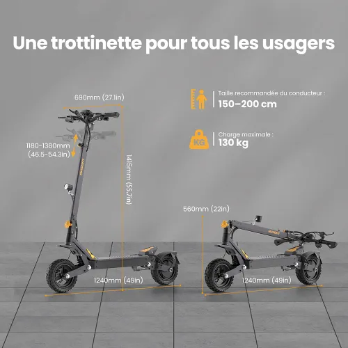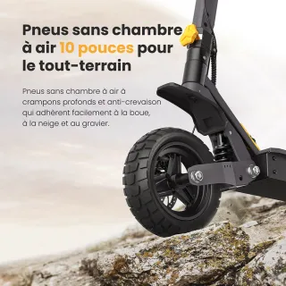 | Dimensions des pneus | 10″ × 2,75″ Pneus tubeless Pression optimale : 36 psi |
