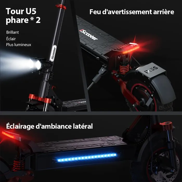 La Trottinette Électrique Pliable ISCOOTER iX5S pour adulte est conçue pour transformer vos trajets quotidiens en une expérience fluide et agréable. Avec une autonomie impressionnante de 60 km et un moteur puissant de 1000W, elle offre une combinaison parfaite de performance, durabilité et confort. Que ce soit pour vos déplacements urbains ou vos escapades, cette trottinette électrique est votre compagnon idéal.